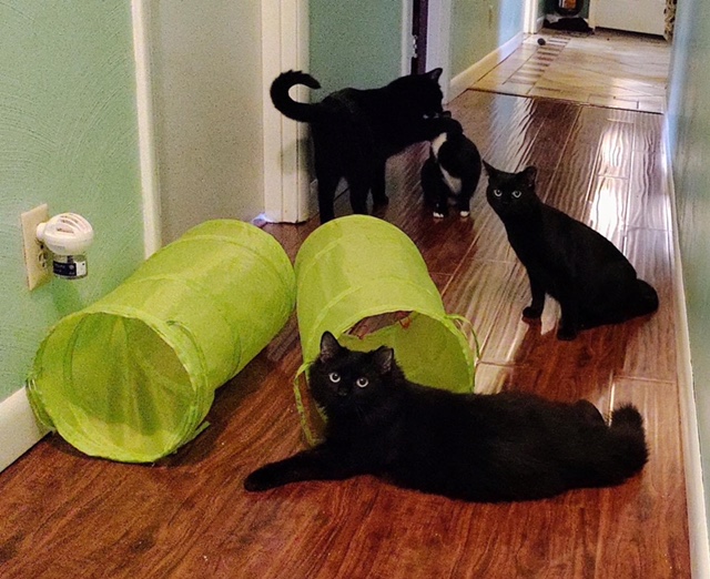 Merlin, Paws, Thing 1, Thing 2, and Mabon: These 5 kitties were trapped in Elma spayed/neutered, vaccinated, and ear tipped. While originally they were going to be barn cats, they were brought into the main house and live with founder Meredith, her partner, Jackson, and their other 2 cats.