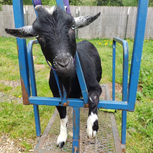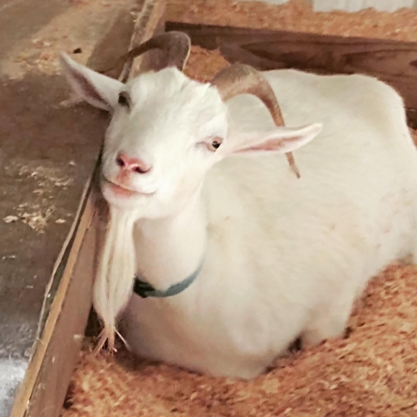 Simon: Simon was adopted with Emily Sunshine from a local rescue in 2014. He was only 6 months old and was born at the rescue. Since Shanti had a spunky personality, Meredith thought that it would be good for her to have a young companion. At the time of adoption, Simon’s mom, Sassy, was adopted out to another family. Simon is now 8 years old and is a Lamancha/Boer cross.