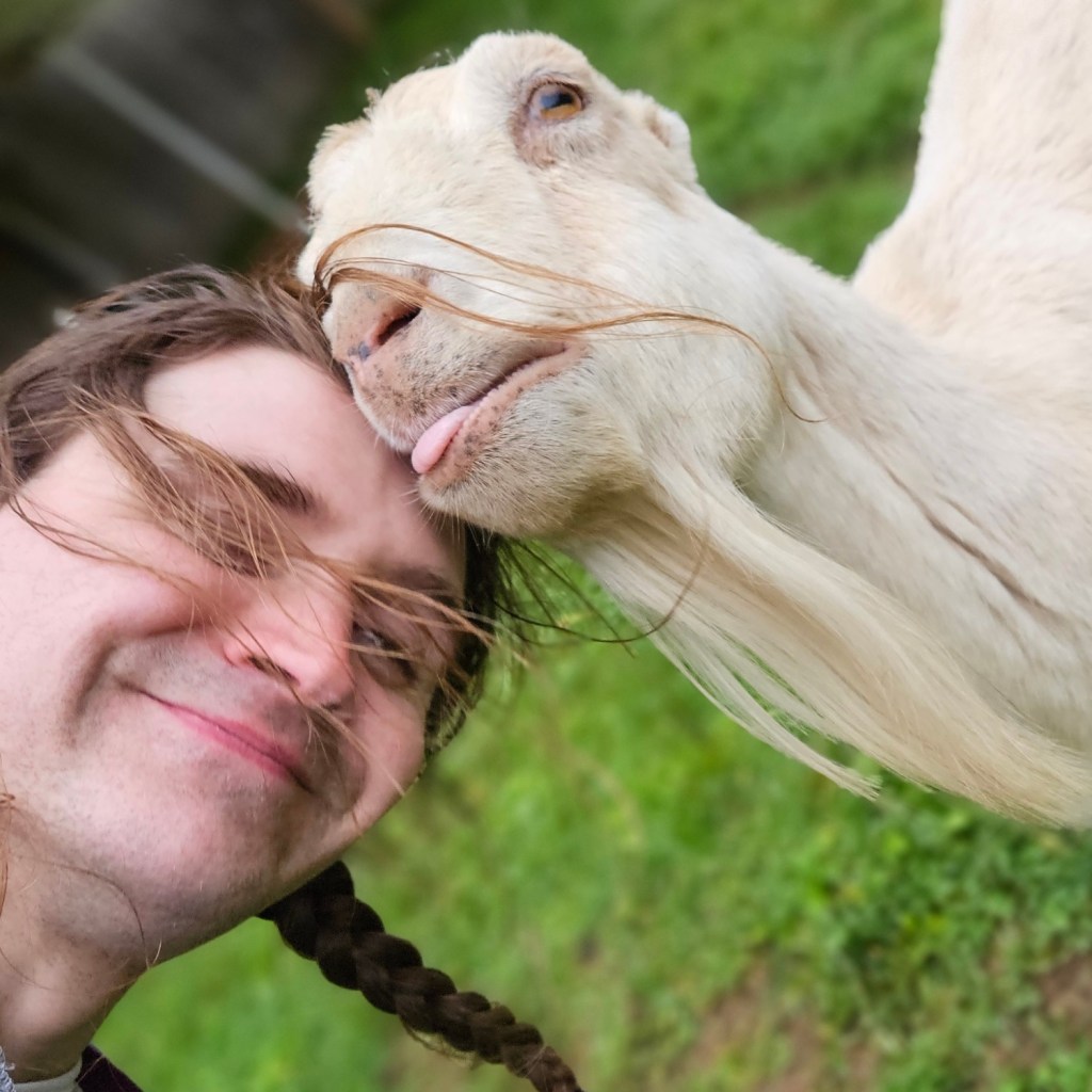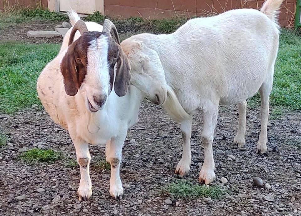 Sassy: After Meredith brought Sassy (Simon’s mom) home, she lived a life of happiness and ease with her son, Simon. This was easy to see when Sassy ate. She would eat the hay from the feeder with sweet eyes and a big sassy smile of happiness. Sassy was a Boer. We almost lost Sassy in 2019 but she has stayed spunky and sassy with the help of medication and a special diet. She was the elder of the herd and passed at 17 years of age.