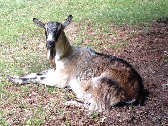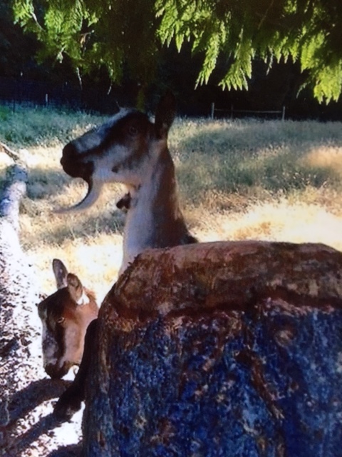 Rosalee: Rosalee was bonded with Sassy when they were brought to the rescue. Rosalee was a sweet Lamancha. She loved to sneak up on and rub her head on people and eat treats. She was the best goat therapist we have ever known. It was just not possible to have any negativity because she radiated love and light.